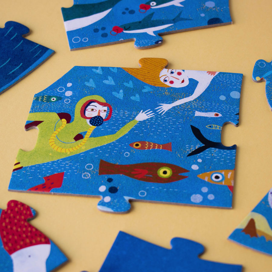 Bezauberndes, großes Puzzle My Big Blue Puzzle von londji mit Meerestieren als Motiv für Kinder. Das Puzzle hat 36 große Teile und ist für Kinder ab 3 Jahre. Es ist wunderschön illustriert und toll geschnitten in Wal-Form mit großen Puzzlestücken, die gut in der Hand liegen. Das Puzzle mit dem großen Wal ist toll für Anfänger geeignet, weil die Puzzlestücke so schön groß sind.